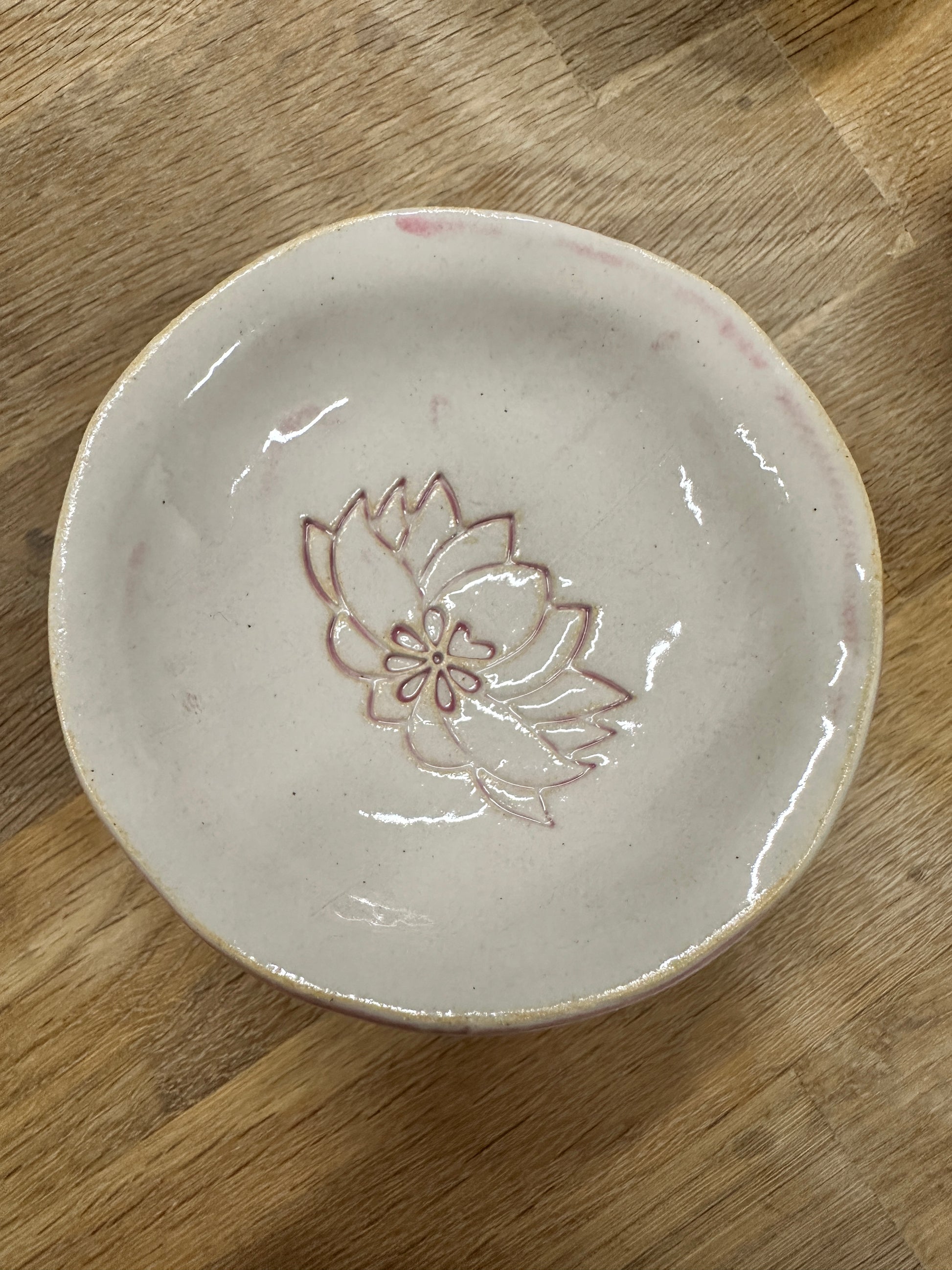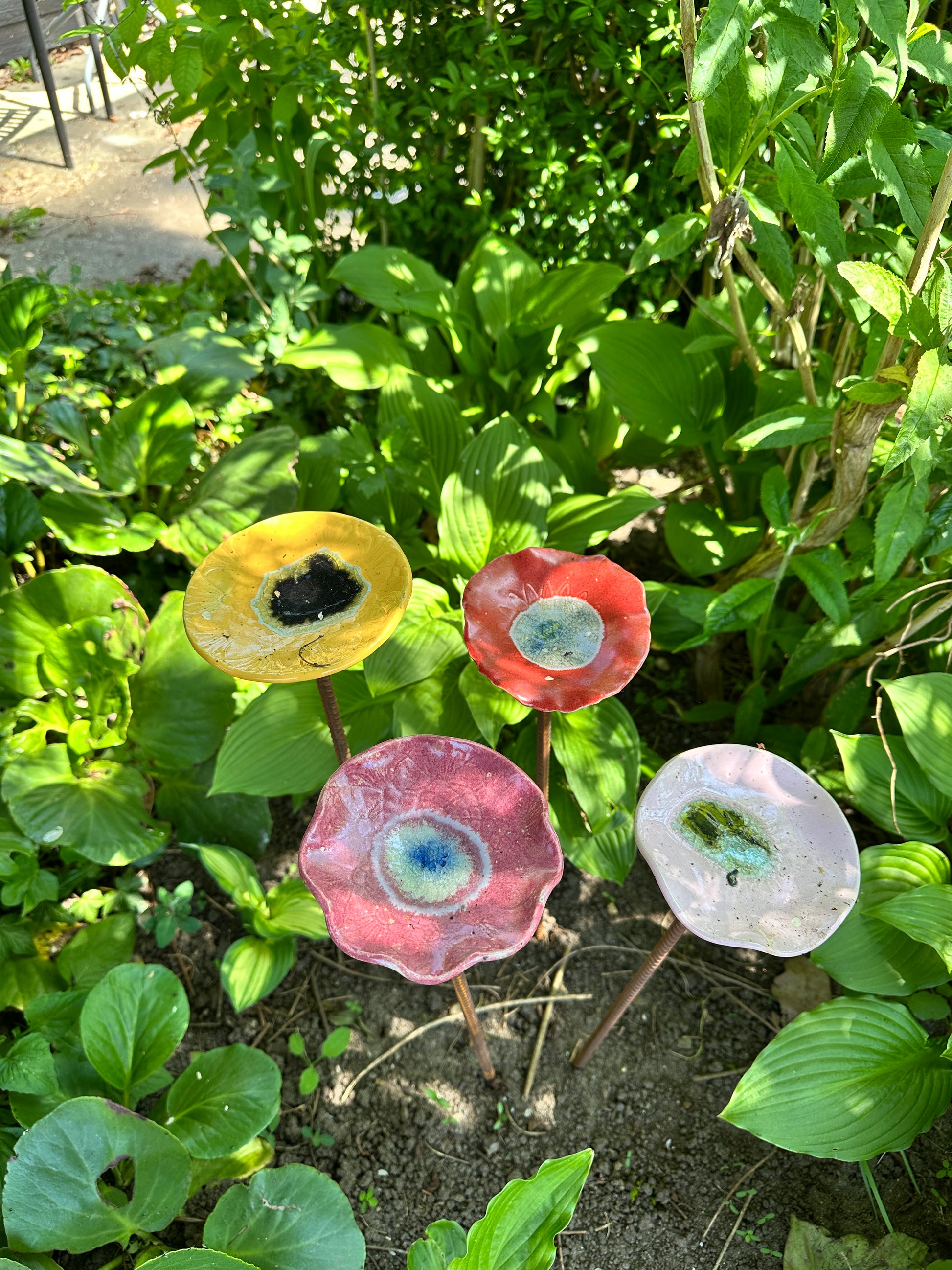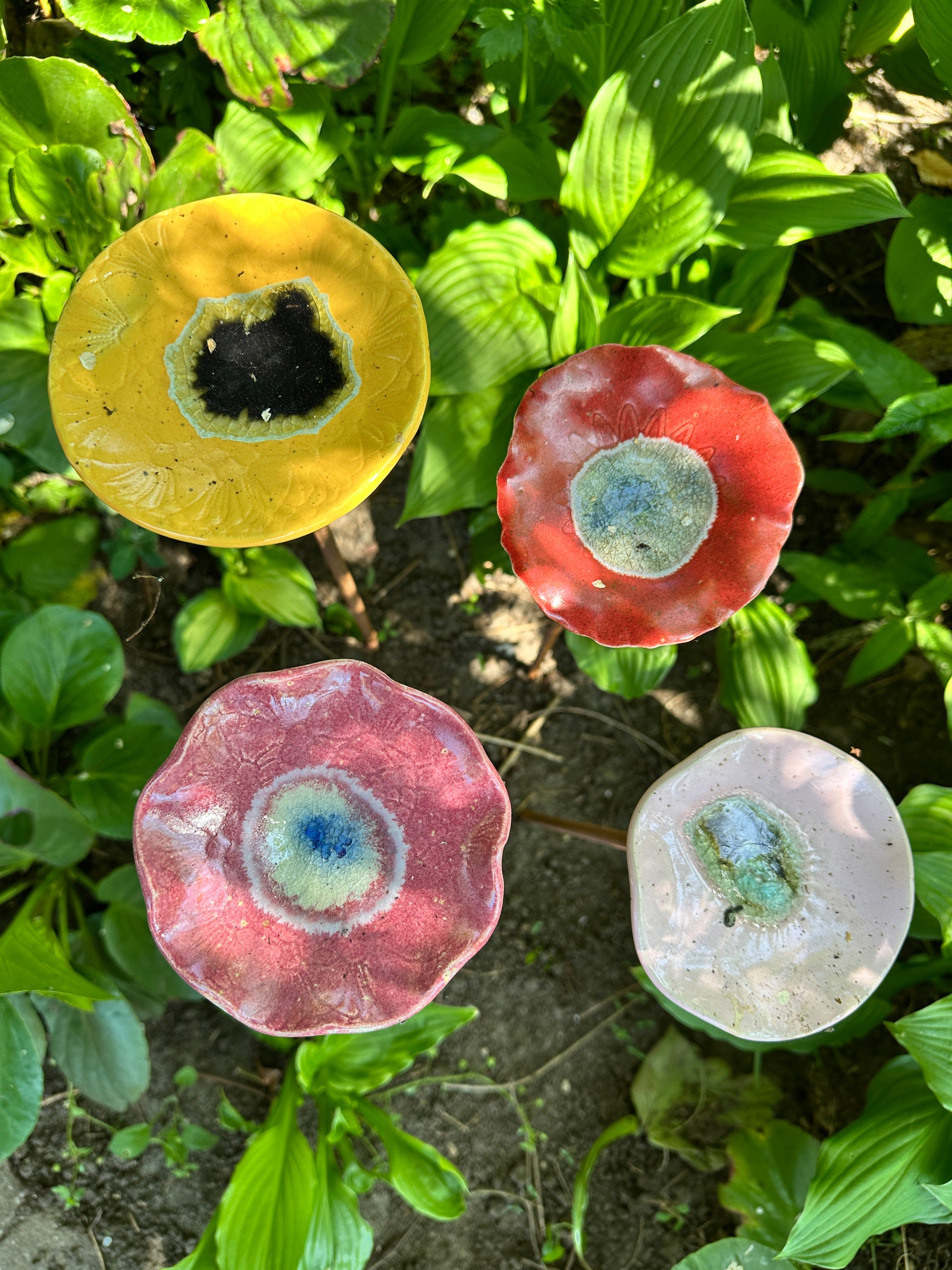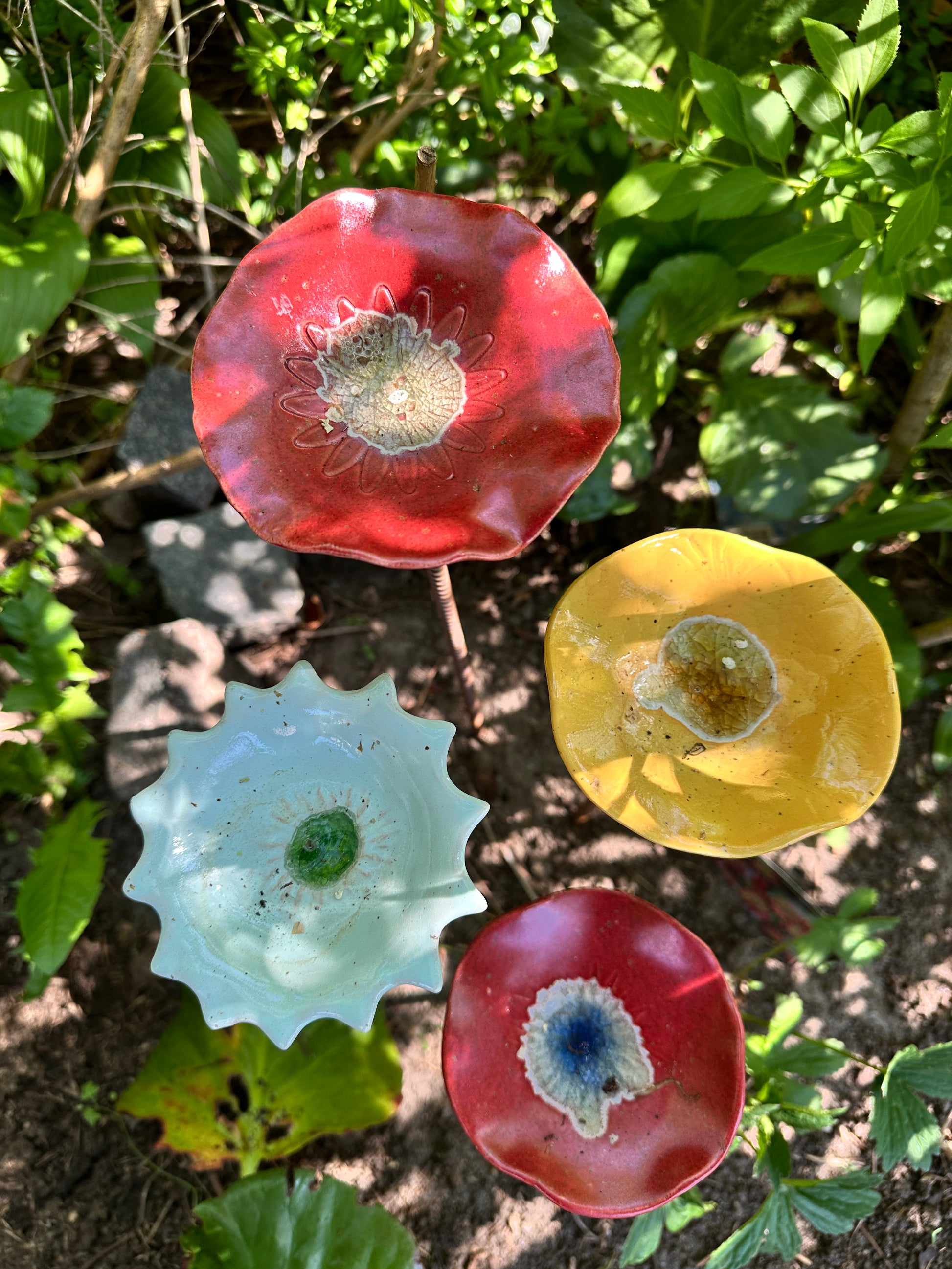 Lille keramikskål, monteres evt. på jernstang, så den er lige til at stikke i jorden.